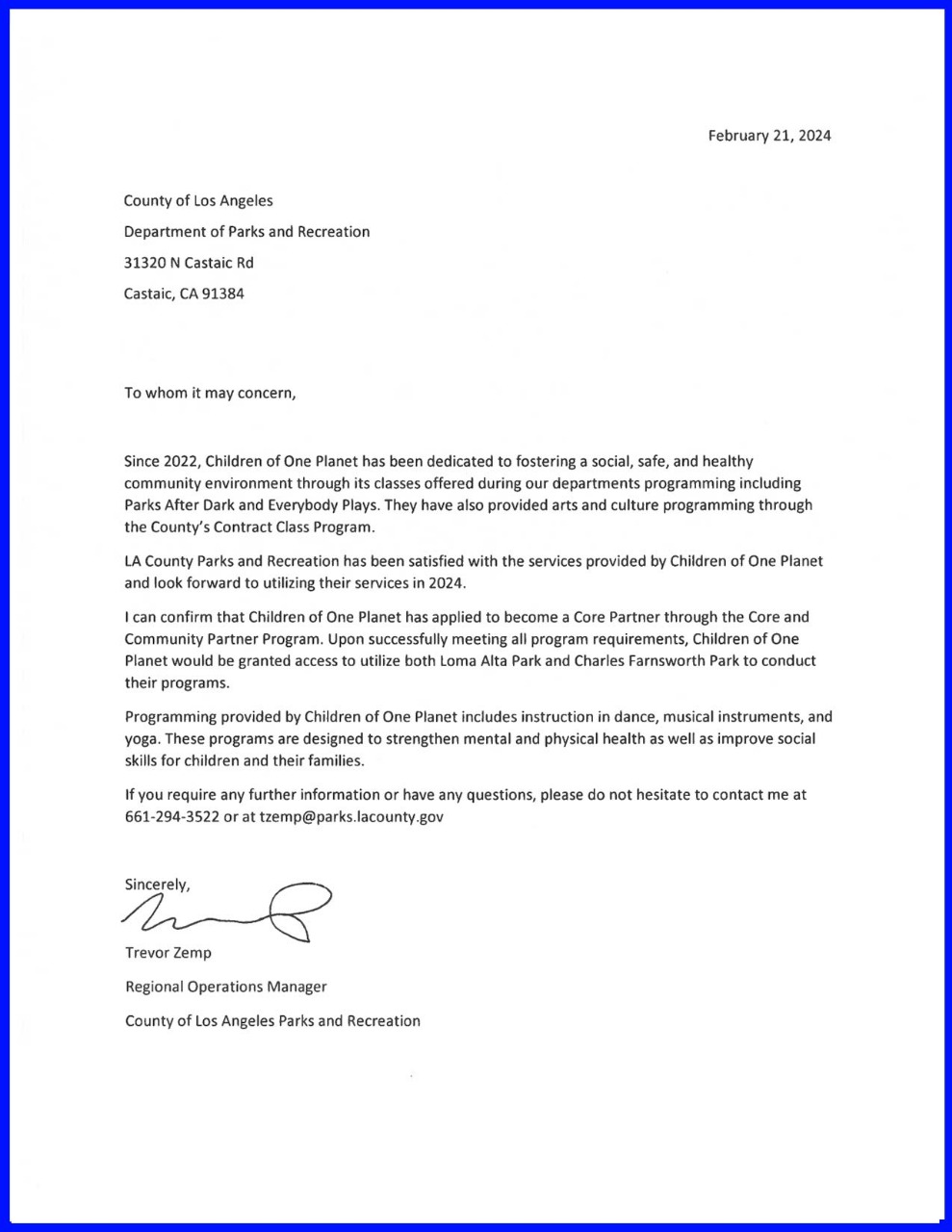 We would like to thank Supervisor Kathryn Barger for her continued support for our programs and efforts in District Five.
